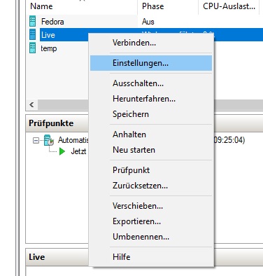→ Dynamischen Speicher aus, mindestens 2048 MB Arbeitsspeicher